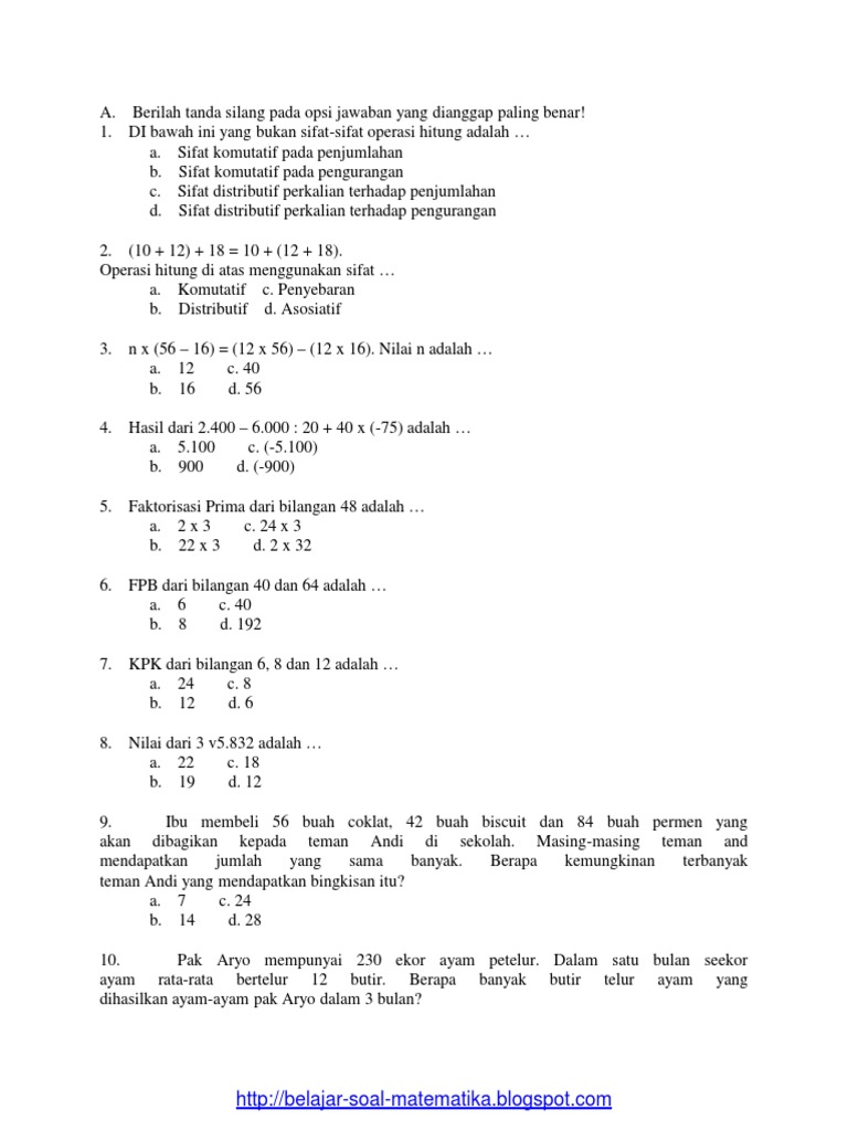 50 Soal UTS Genap Matematika Kelas 6 Semester Kurikulum ...