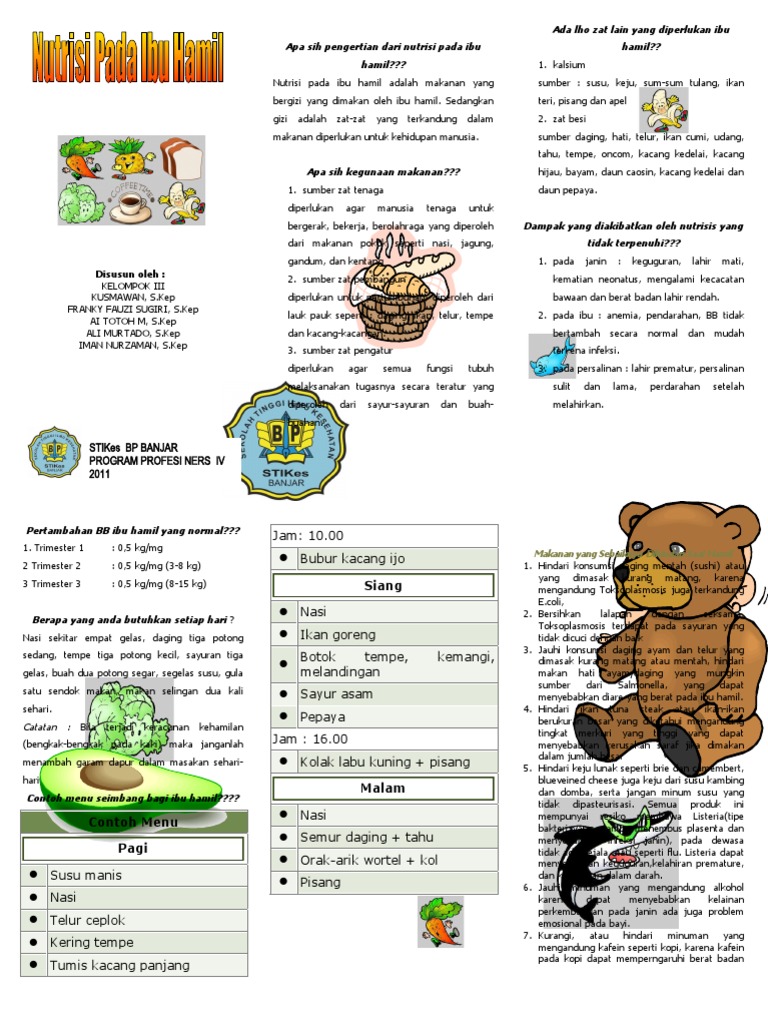 Leaflet Makanan Sehat Untuk Ibu Hamil. Panduan makanan sehat untuk ibu hamil muda agar janin tetap sehat. Makanan Untuk Ibu Hamil Agar Bayi Terlahir Jenius.