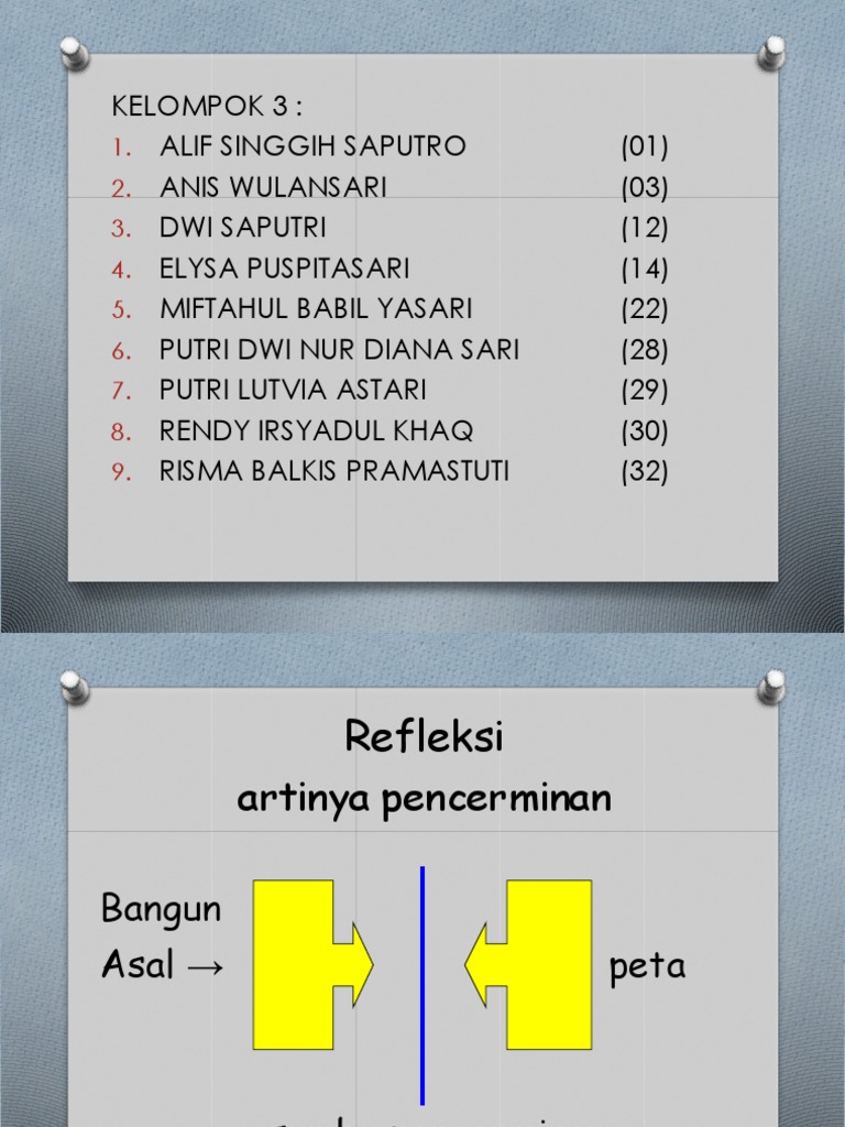 Matematika Refleksi. Pod njom se u širem smislu podrazumijeva da je ona. Documents Similar To Presentasi Matematika Kelas Xii Transformasi Refleksi.