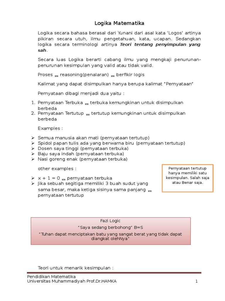 pengantar dasar matematika (logika matematika)