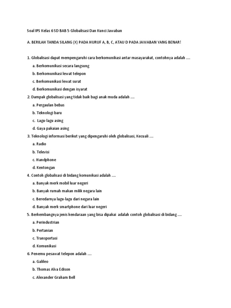 Soal IPS Kelas 6 SD BAB 5 Globalisasi Dan Kunci Jawaban