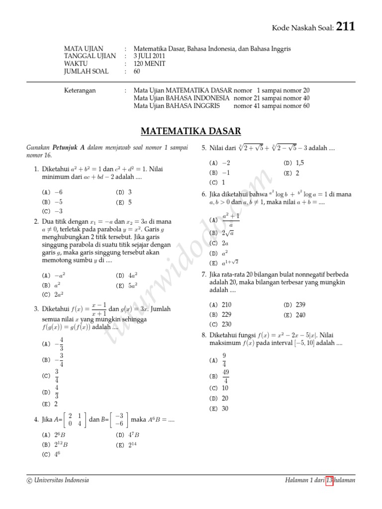 Matematika Dasar Simak Ui 2011