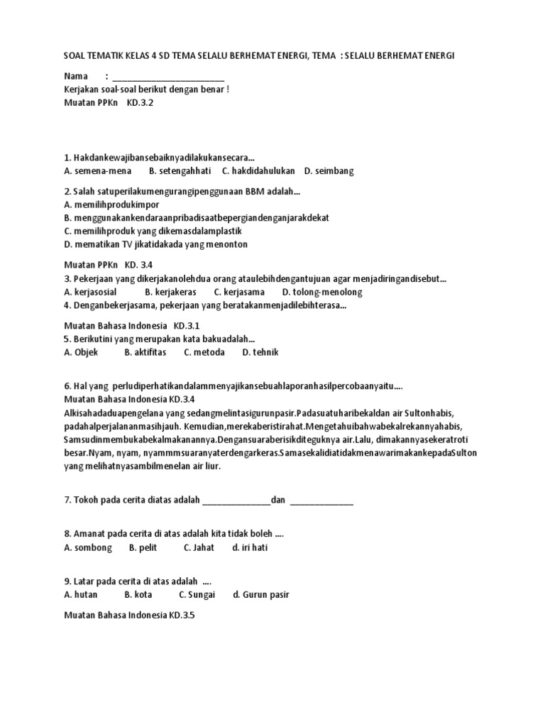 Subtema 2 pentingnya makanan sehat bagi tubuh. Berikut ini adalah rincian materi pelajaran tematik kelas 4 tema 1 tentang indahnya kebersamaan selengkapnya. Buku materi tematik ini hanya tersedia 3 subtema dan setiap subtema memiliki pembahasan masing masing berbeda. Soal tematik kelas 4 sd tema selalu berhemat energi, tema :